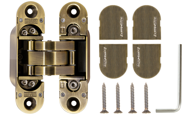 Петля скрытой установки с 3D-регулировкой UNIVERSAL 3D-ACH 60 AB Бронза предназначена для скрытой установки в межкомнатные двери толщиной от 40 мм.