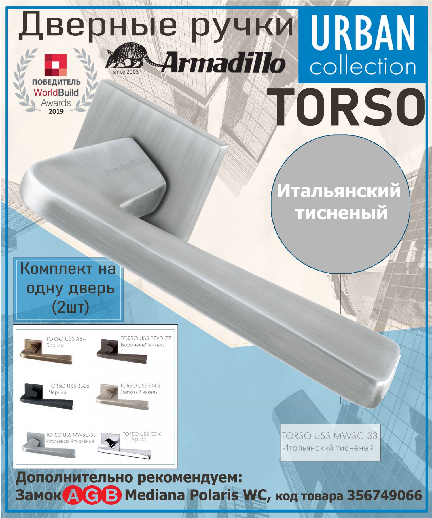 | Комплектация | Дверная ручка (комплект на одну дверь), соединительный квадрат, крепеж |
